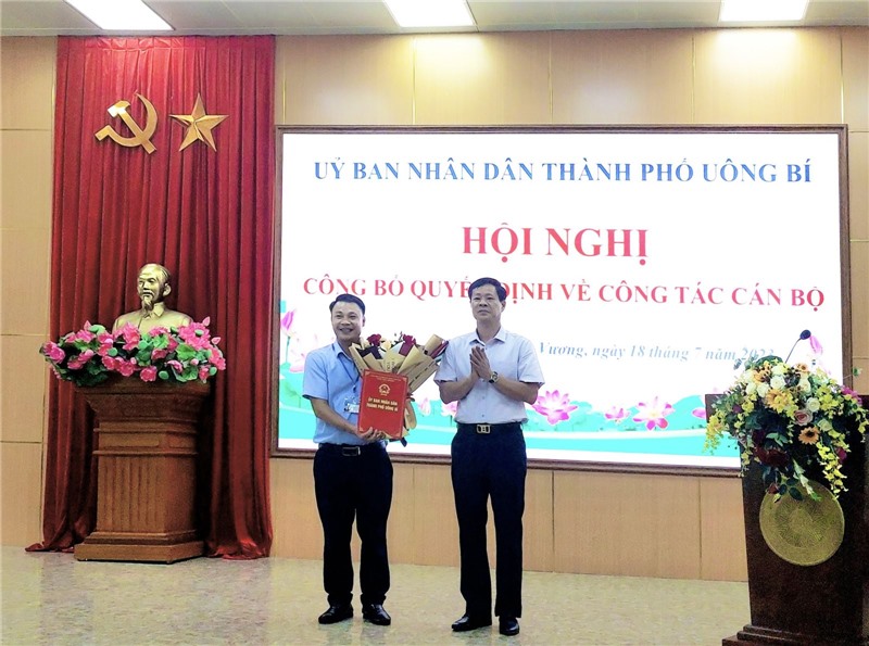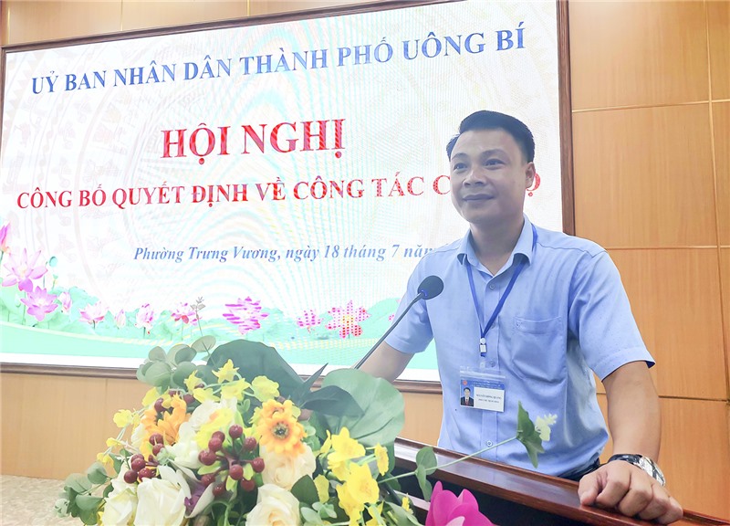 Ngày 18/7, tại phường Trưng Vương, UBND thành phố Uông Bí tổ chức Hội nghị công bố Quyết định về công tác cán bộ. Đồng chí Phạm Tuấn Đạt, Phó Bí thư Thành ủy, Chủ tịch UBND thành phố chỉ đạo hội nghị.