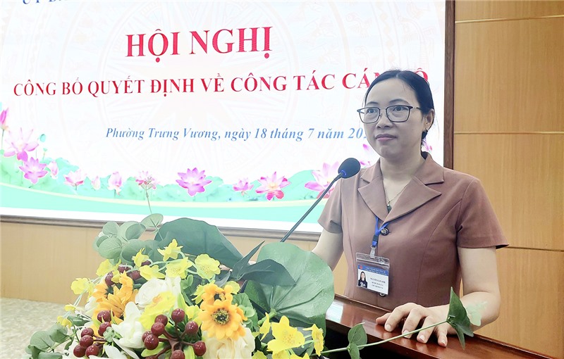 Tại hội nghị, đồng chí Phạm Tuấn Đạt, Phó Bí thư Thành ủy, Chủ tịch UBND thành phố đã trao Quyết định giao quyền Chủ tịch UBND phường Trưng Vương khoá II, nhiệm kỳ 2021-2026 đối với đồng chí Nguyễn Hồng Quảng, Phó Chủ tịch UBND phường Trưng Vương nhiệm kỳ 2021-2026 cho đến khi kiện toàn chức vụ Chủ tịch UBND phường Trưng Vương nhiệm kỳ 2021-2026.
