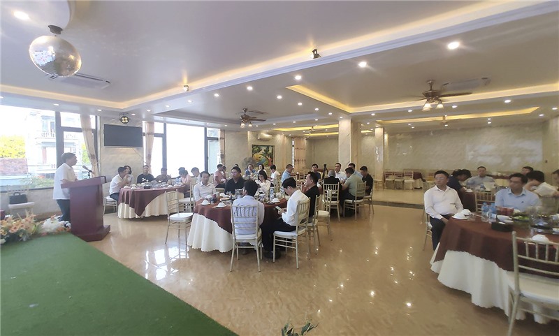 Lãnh đạo Công ty Cổ phần Xi măng và Xây dựng Quảng Ninh trao đổi thông tin tại buổi gặp mặt.