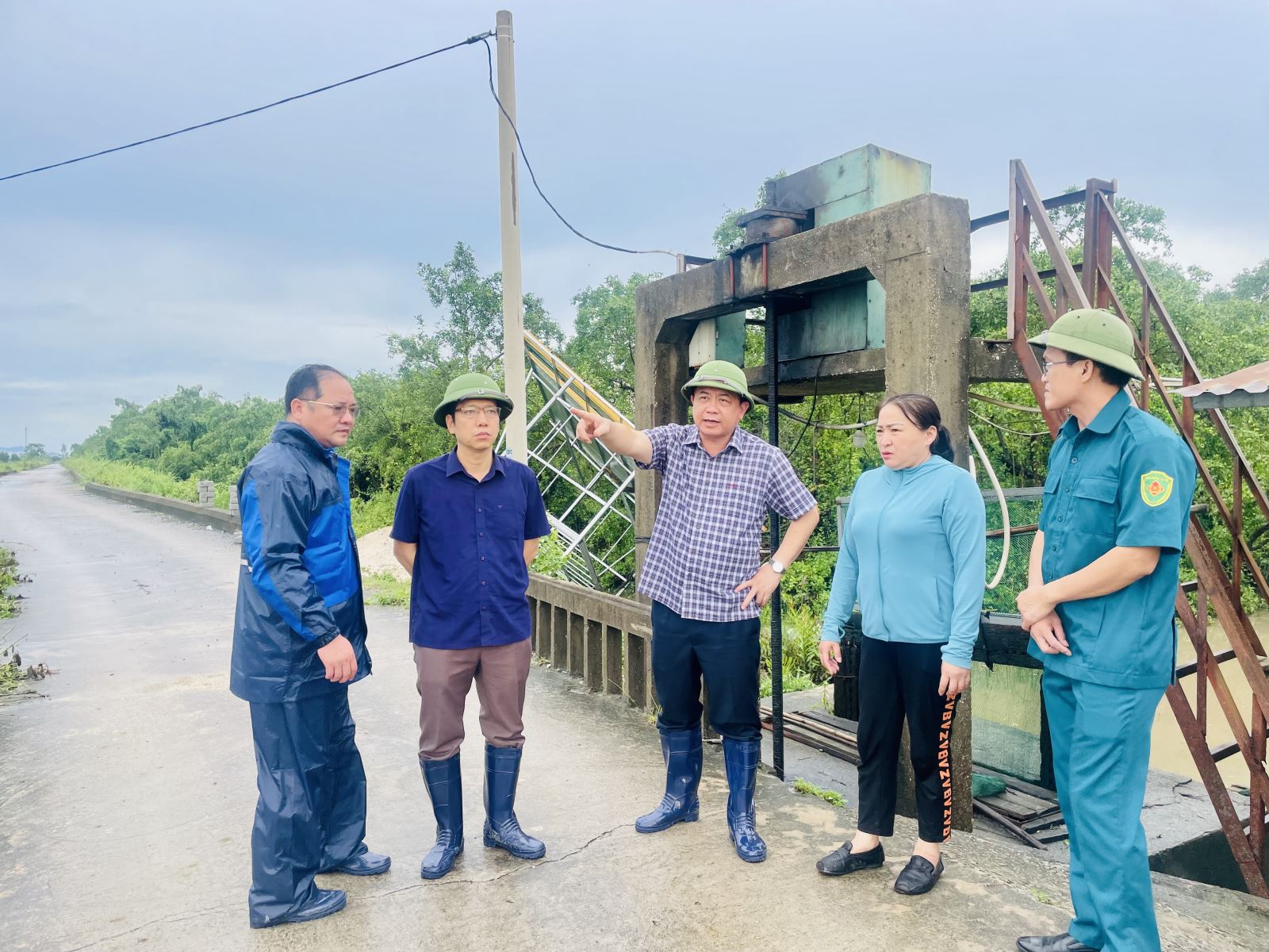 Lãnh đạo UBND thành phố kiểm tra cửa cống tại đê Vành Kiệu 3.