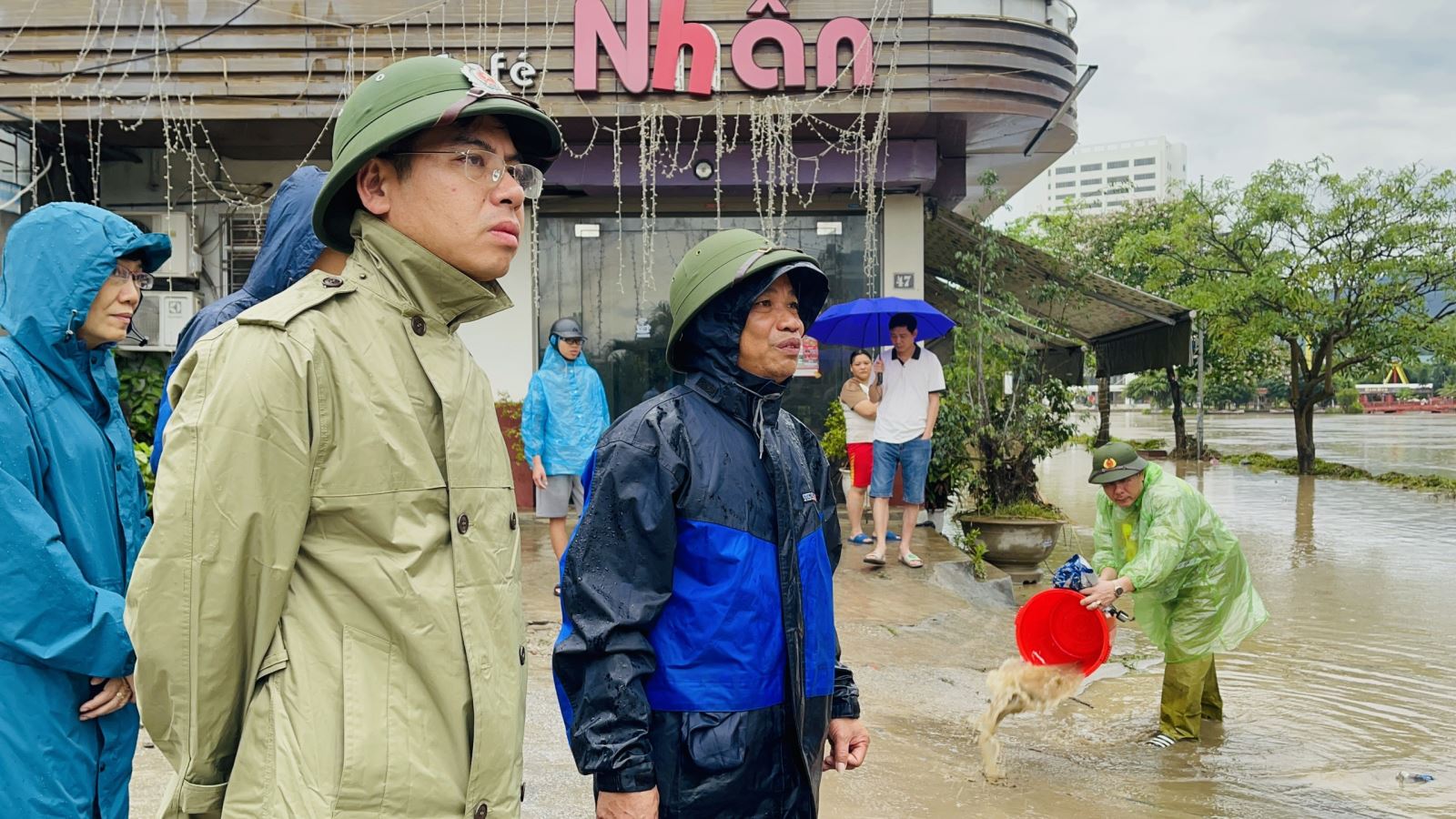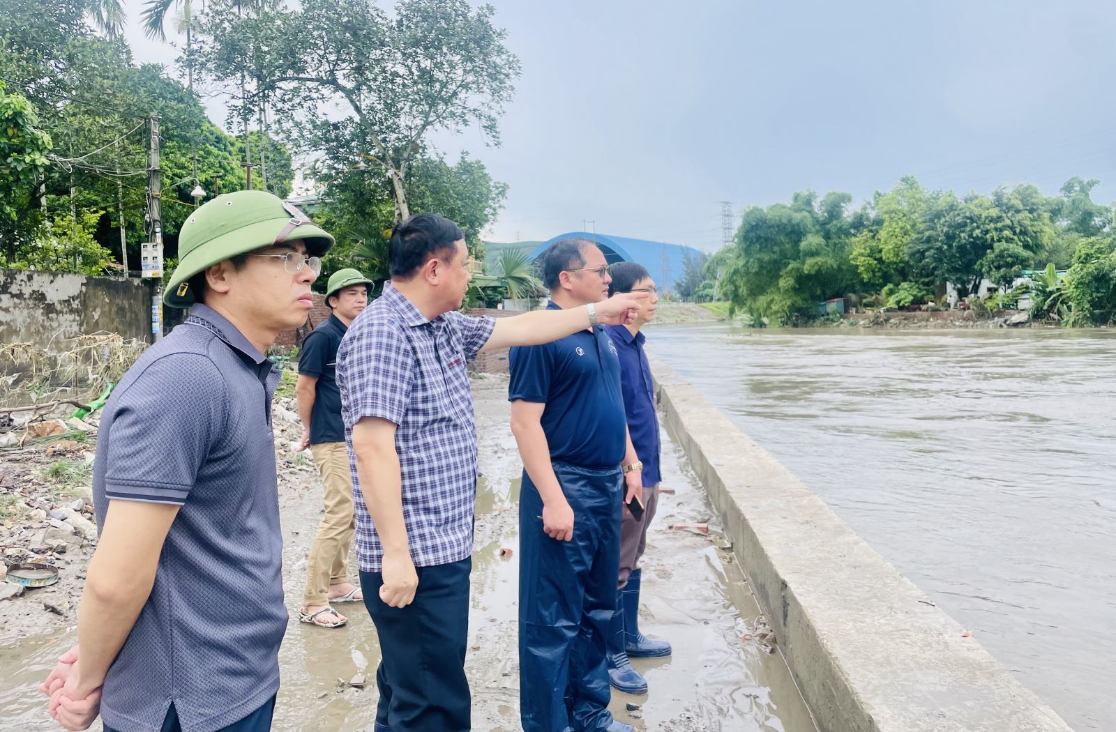 Đồng chí Bí thư Thành uỷ Mai Vũ Tuấn kiểm tra công tác khắc phục hậu quả sau mưa lớn tại các điểm.