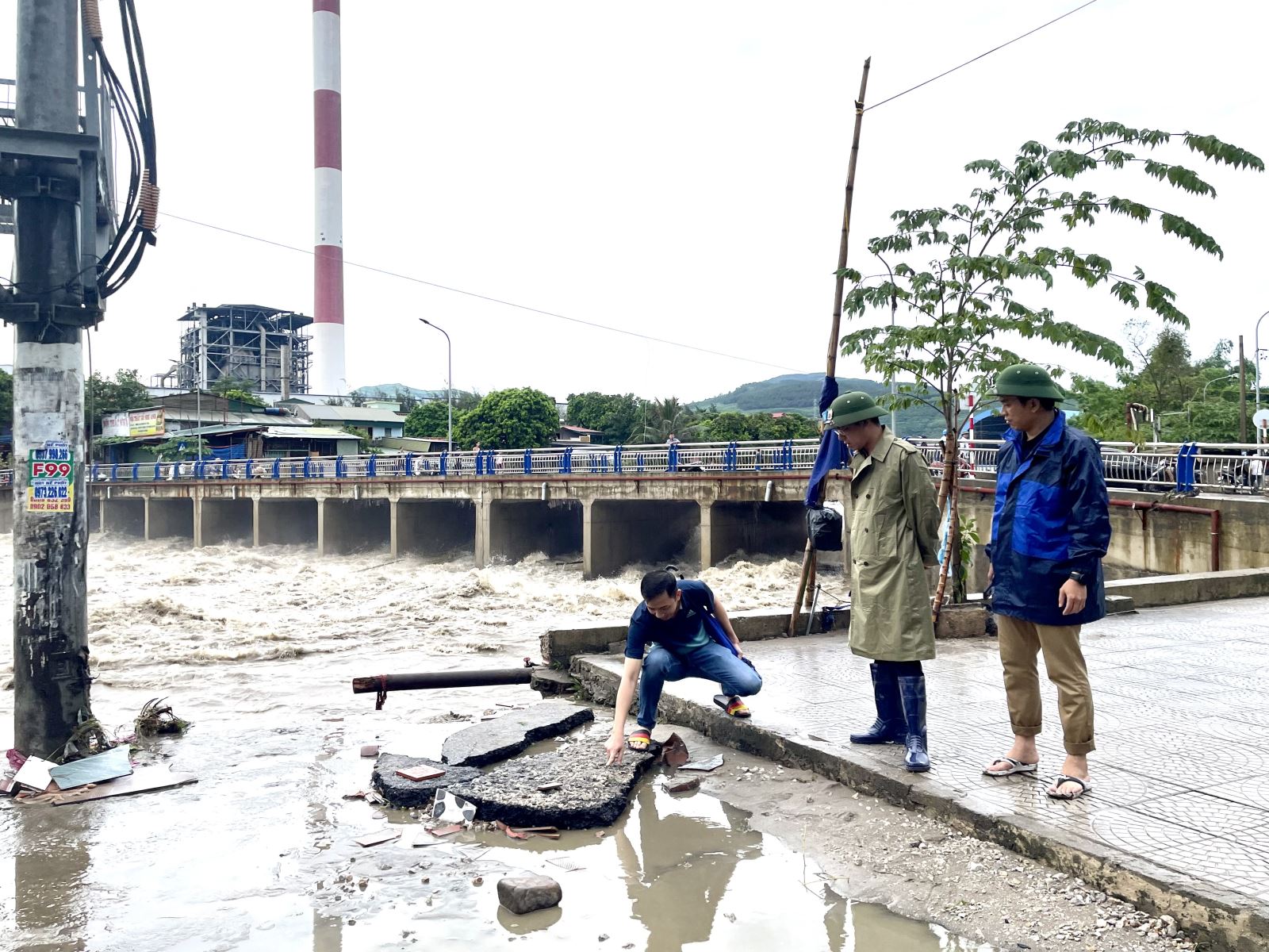 Kiểm tra tại Cầu Đập tràn khu vực nhà máy nhiệt điện, đập tràn cầu Sông Sinh và khu vực đường công vụ phục vụ thi công dự án đường ven sông, đồng chí Mai Vũ Tuấn, Uỷ viên BCH Đảng bộ tỉnh, Bí thư Thành uỷ chỉ đạo các xã phường nhanh chóng rà soát thiệt hại do ngập lụt gây ra; khẩn trương tiến hành các biện pháp khắc phục nhanh nhất, để các hoạt động của người dân nhanh chóng trở lại bình thường. Bên cạnh việc đẩy mạnh triển khai các biện pháp khắc phục, cần tiếp tục theo dõi chặt chẽ diễn biến tình hình để chủ động sẵn sàng ứng phó với những diễn biến tiếp theo của thời tiết.