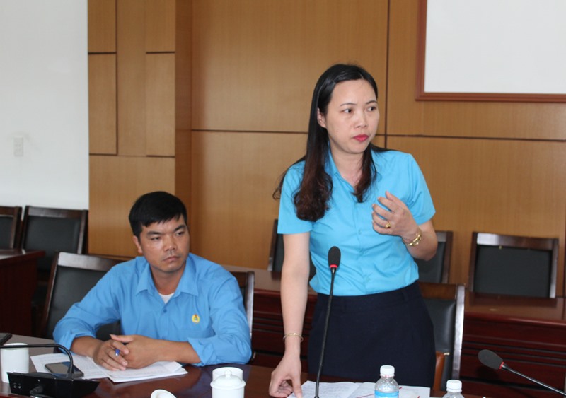 Đồng chí Nguyễn Thị Lan Anh, Chủ tịch LĐLĐ thành phố phát biểu tại cuộc làm việc.