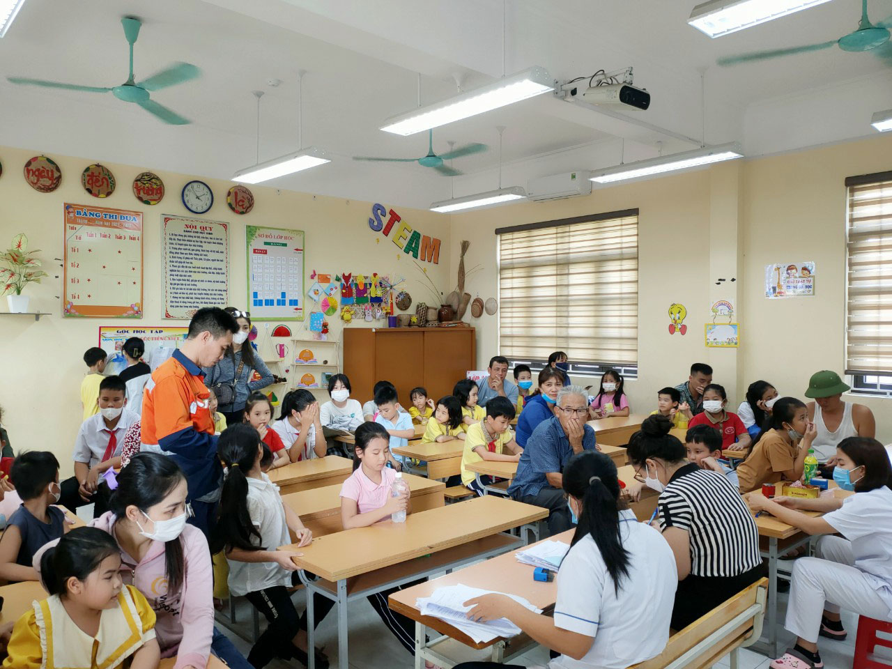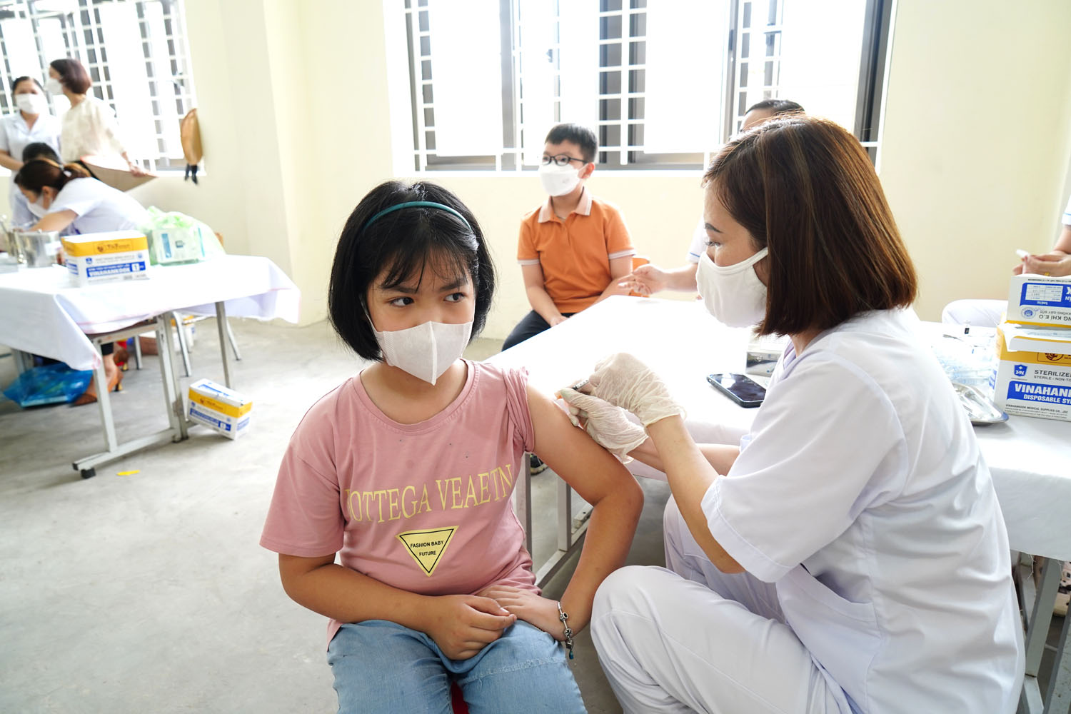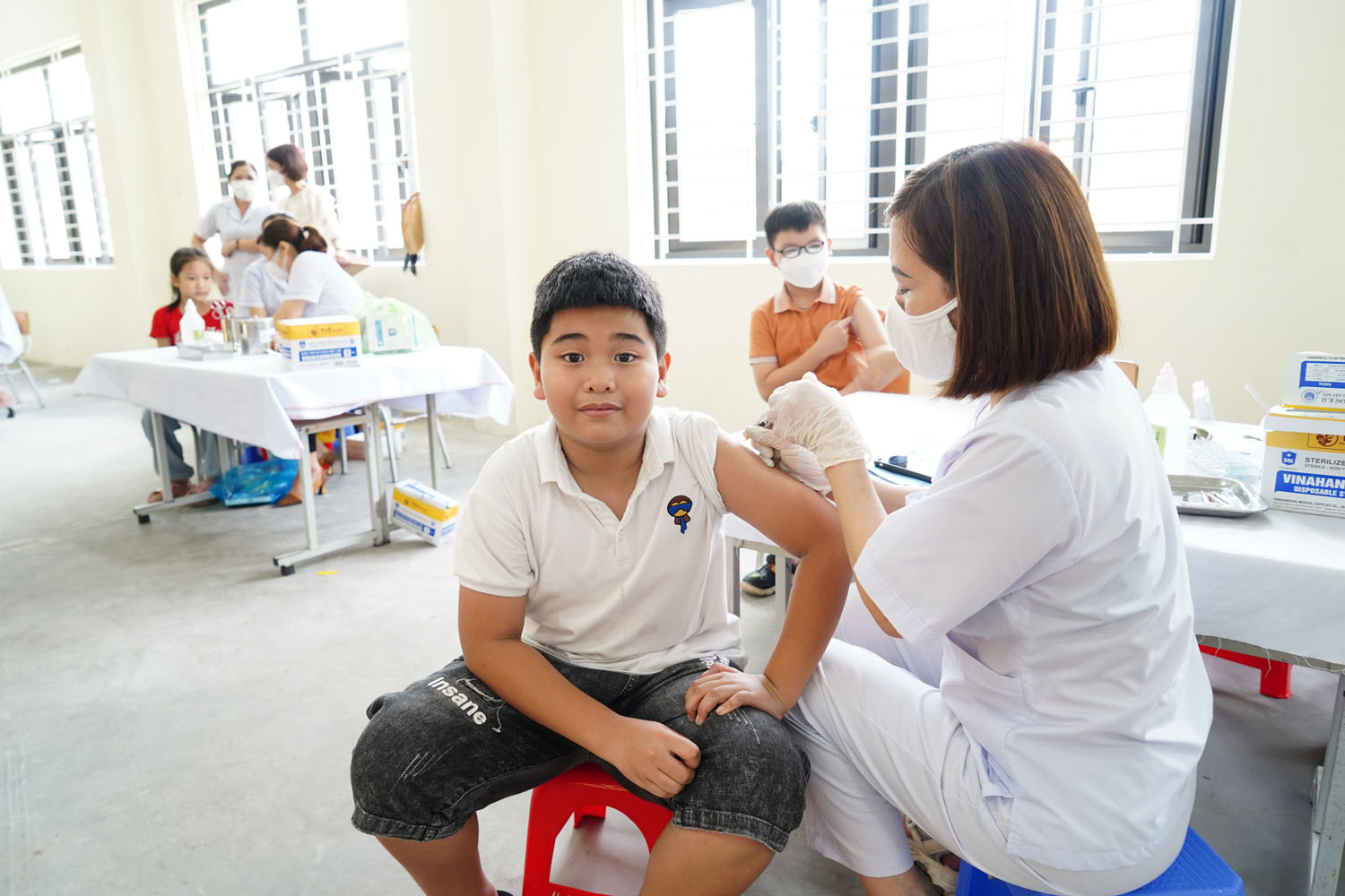 Mỗi điểm tiêm chủng đều được bố trí từ 1 đến 3 bàn tiêm cùng lực lượng cấp cứu thường trực để kịp thời xử lý các tình huống phát sinh. Các trường chủ động lên danh sách học sinh đủ điều kiện tiêm chủng, phân chia giờ tiêm cụ thể đối với từng khối lớp nên tại các điểm tiêm đều không có hiện tượng ùn tắc. Các nhà trường cũng huy động lực lượng cán bộ, giáo viên hỗ trợ công tác tiêm chủng.