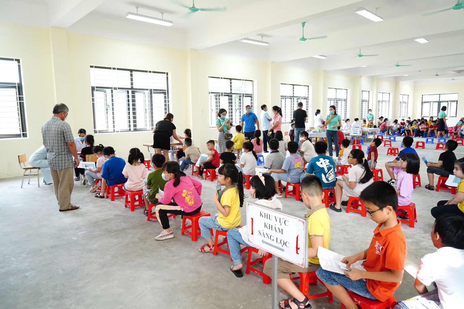 Điểm tiêm tại Trường TH Lê Lợi được bố trí khoa học.