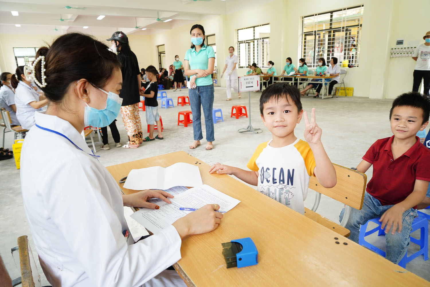 Tại điểm tiêm Trường TH Phương Đông B, trong ngày 29/11 bố trí tiêm 484 liều vắc xin phòng Covid-19.