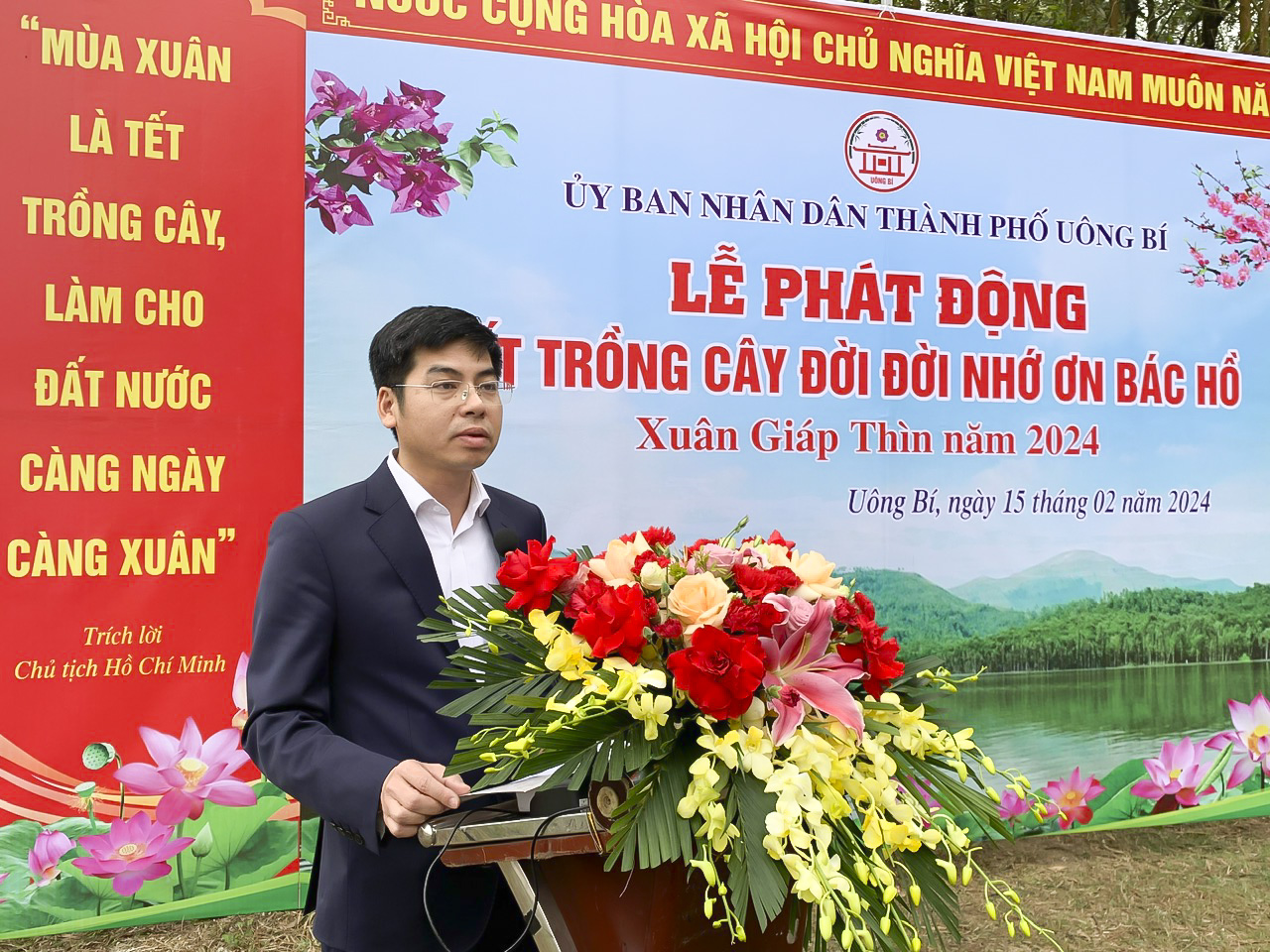 Thay mặt Lãnh đạo UBND thành phố, đồng chí Nguyễn Đức Hoà - PCT UBND Thành phố kêu gọi cộng đồng Doanh nghiệp và toàn thể Nhân dân ra sức thi đua, hăng hái tham gia lao động sản xuất; đồng thời trồng thật nhiều cây xanh, cây cảnh quan môi trường; trồng cây ăn quả, cây lấy gỗ, trồng đa dụng các loài, cây hoa thân gỗ; trồng cây trong thôn xóm, khu phố, trên vùng đất trống, đồi, núi trọc…; đồng thời tích cực tham gia trồng rừng, trồng cây bản địa, cây gỗ lớn Lim, Giổi, Lát, bảo vệ rừng. Cùng chung sức, chung lòng phấn đấu thực hiện tốt lời dạy của Bác, vừa góp phần phát triển kinh tế - xã hội địa phương, nâng cao thu nhập, nâng cao chất lượng cuộc sống cho Nhân dân, vừa giữ gìn môi trường sống, góp phần to lớn xây dựng thành phố Uông Bí phát triển toàn diện, vì một Uông Bí phát triển xanh, bền vững, bốn mùa hoa.