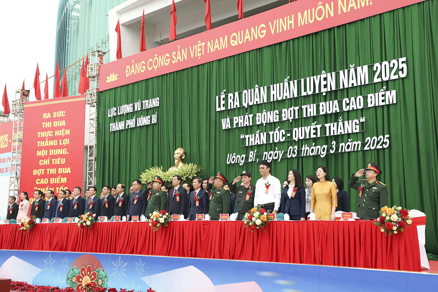 Ngày 3/3, thành phố Uông Bí long trọng tổ chức Lễ ra quân huấn luyện năm 2025 và phát động đợt thi đua cao điểm “Thần tốc - Quyết thắng”. Dự, chỉ đạo có các đồng chí: Mai Vũ Tuấn, Uỷ viên Ban chấp hành Đảng bộ tỉnh, Bí thư Thành uỷ, Bí thư Đảng uỷ Quân sự thành phố; Nguyễn Chiến Thắng, Phó Bí thư Thường trực Thành uỷ, Chủ tịch HĐND thành phố; Phạm Tuấn Đạt, Phó Bí thư Thành uỷ, Chủ tịch UBND thành phố. Tới dự có Thượng tá Hoàng Minh Vương, Phó Tham mưu trưởng Bộ Chỉ huy Quân sự tỉnh Quảng Ninh.