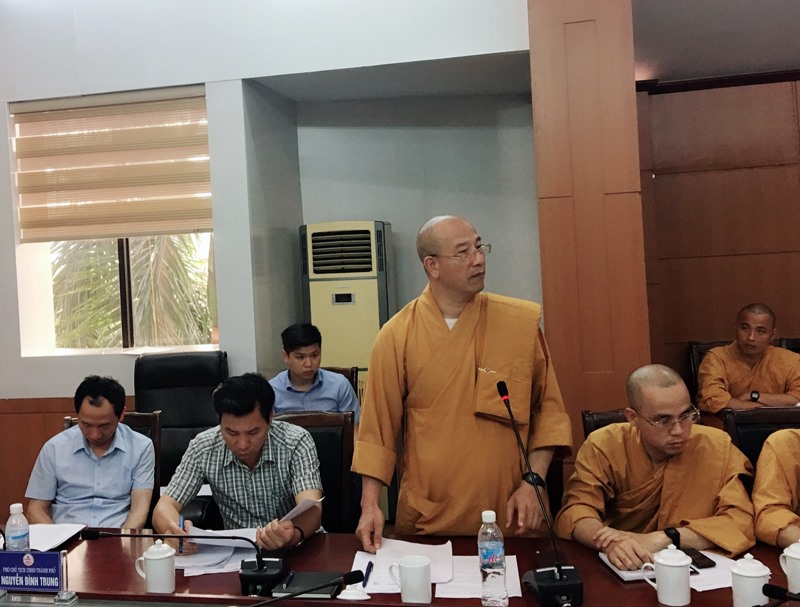 Đại đức Thích Trúc Thái Minh, trụ trì Chùa Ba Vàng giải trình.