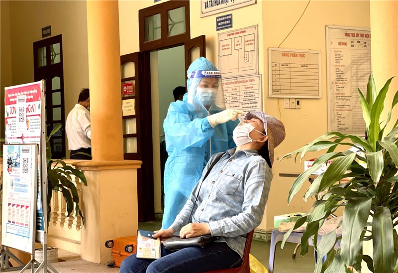 Phường Quang Trung phối hợp với các lực lượng triển khai xét nghiệm tầm soát người có nguy cơ cao.