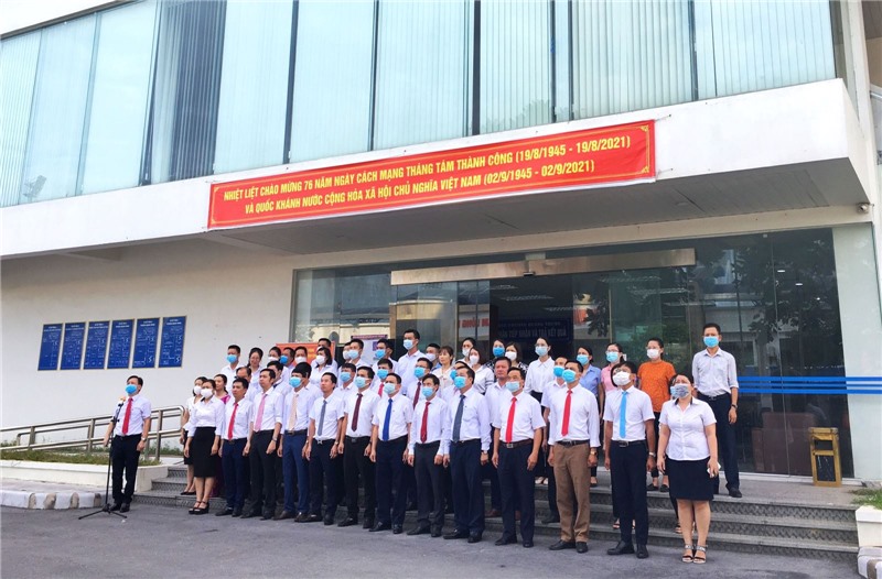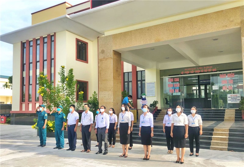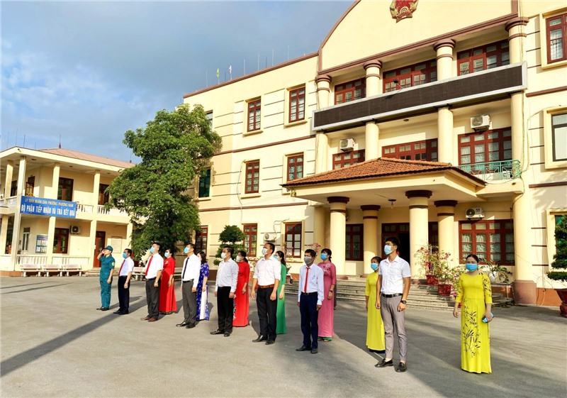 Thực hiện Thông báo số 362-TB/TU ngày 21/9/2021 của Thường trực Tỉnh ủy – Ban chỉ đạo cấp tỉnh về phòng, chống dịch bệnh Covid-19 triển khai các biện pháp phòng, chống dịch Covid-19 trong trạng thái bình thường mới; văn bản số 6636/UBND-LD1 ngày 22/9/2021 của Ủy ban nhân dân tỉnh về triển khai các giải pháp bảo đảm phòng, chống dịch Covid-19 khi mở lại một số hoạt động kinh tế - xã hội, sáng ngày 04/10, CBCCVC các phòng, ban, ngành thuộc Thành ủy - HĐND - UBND - MTTQ TP Uông Bí nghiêm túc thực hiện nghi thức chào cờ Tổ quốc.