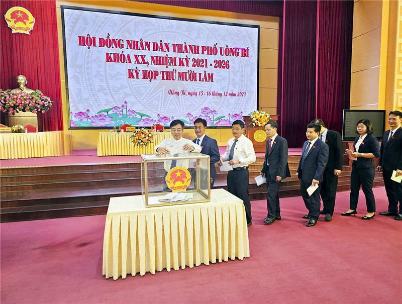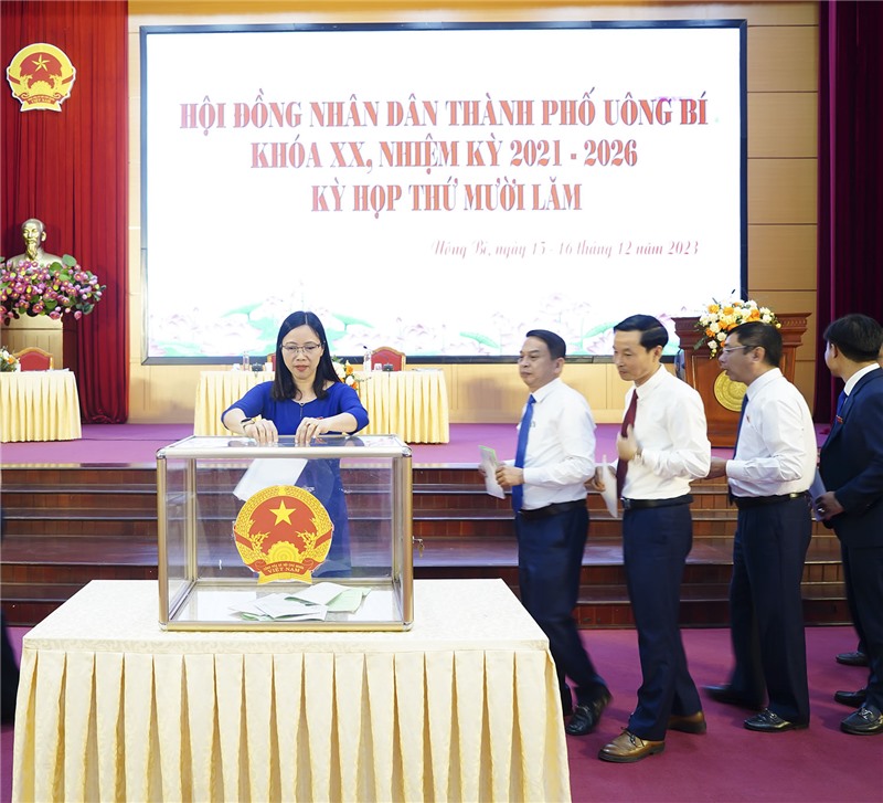 Thực hiện chương trình làm việc của Kỳ họp thứ XV HĐND thành phố Uông Bí khóa XX, nhiệm kỳ 2021 - 2026, trong phiên làm việc buổi chiều ngày 15/12, đại biểu HĐND thành phố đã thực hiện quy trình lấy phiếu tín nhiệm đối với 19 người giữ chức vụ do Hội đồng nhân dân thành phố bầu theo hình thức bỏ phiếu kín.