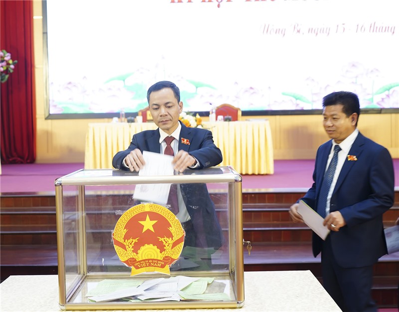 Các đại biểu HĐND thành phố thực hiện quy trình lấy phiếu tín nhiệm đối với những người giữ chức vụ do HĐND bầu.