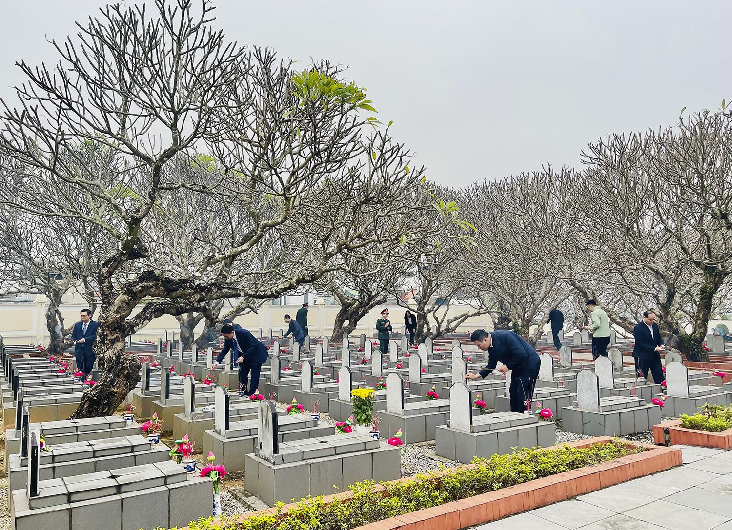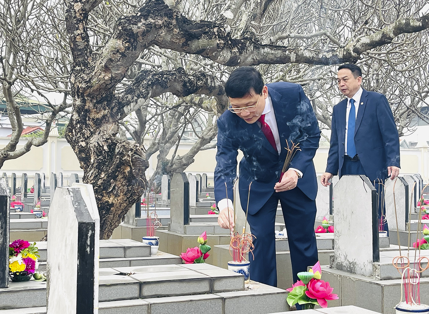 Đoàn đại biểu thành phố thắp hương tại phần mộ các Anh hùng, liệt sỹ.