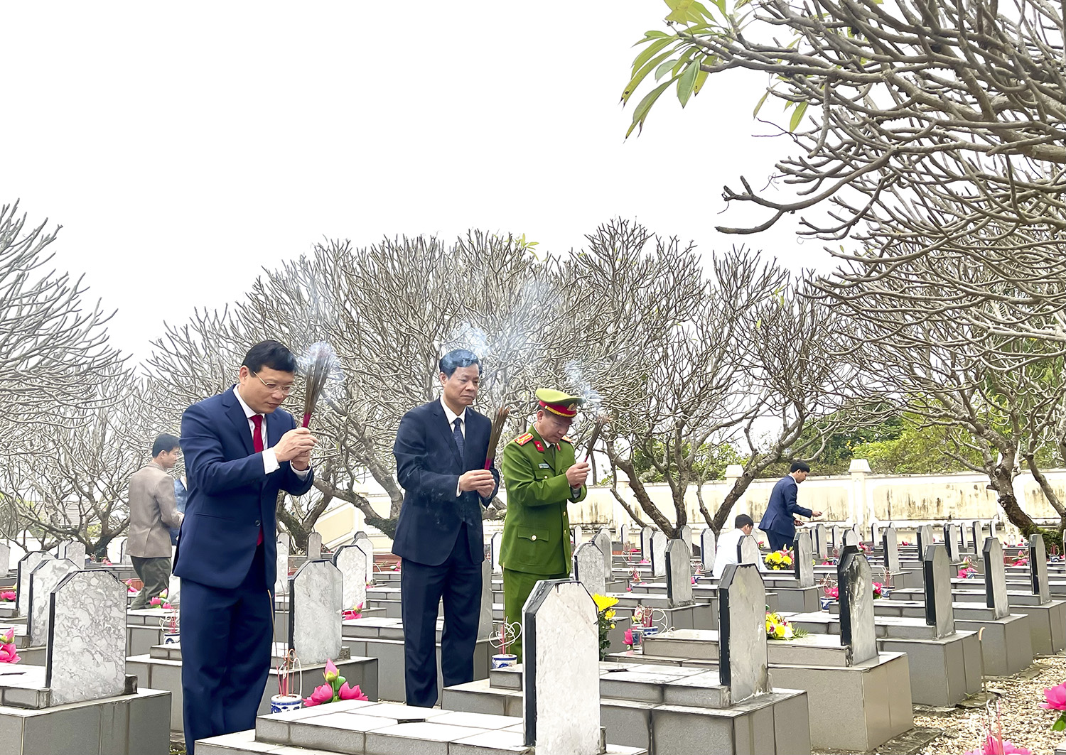 Tại Nghĩa trang Liệt sỹ thành phố, với lòng thành kính, sự tri ân sâu sắc, Đoàn đại biểu Thành uỷ, HĐND, UBND, Uỷ ban MTTQ và lực lượng vũ trang thành phố đã dành một phút tưởng niệm để bày tỏ lòng biết ơn vô hạn đối với sự hy sinh to lớn của các anh hùng, liệt sỹ. Các thế hệ hôm nay mãi mãi khắc ghi, biết ơn công lao và sự hy sinh to lớn của các anh hùng, liệt sĩ đã anh dũng hy sinh vì nền độc lập - tự do của Tổ quốc. Đảng bộ, chính quyền, quân và dân thành phố luôn tuyệt đối trung thành; vận dụng sáng tạo, có hiệu quả đường lối lãnh đạo của Đảng vào thực tiễn của địa phương và giành được những thành tựu quan trọng trong công cuộc đổi mới.