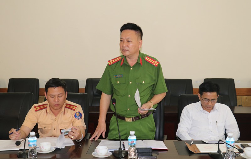 Lãnh đạo Công an thành phố phát biểu tại hội nghị.