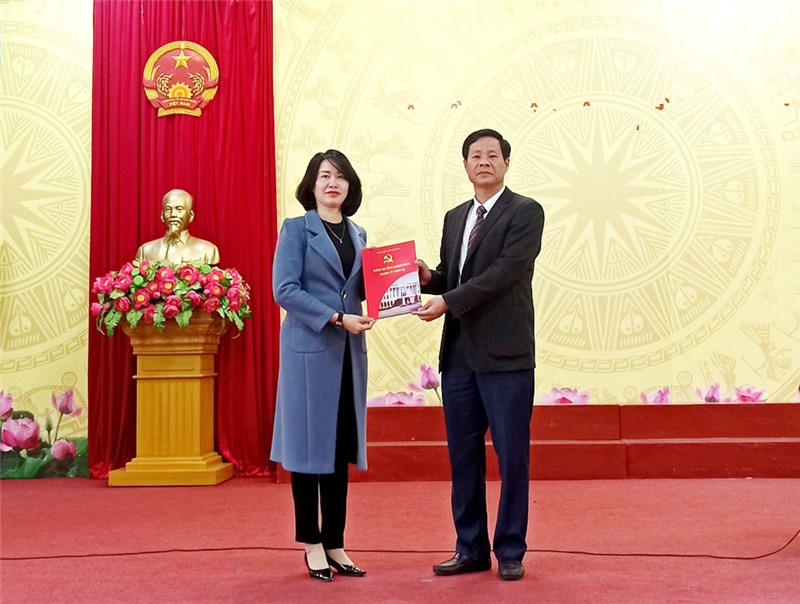 Đồng chí Phạm Tuấn Đạt, Phó Bí thư Thường trực Thành ủy, Chủ tịch HĐND thành phố trao Quyết định cho đồng chí Hoàng Thị Hà nhận nhiệm vụ mới tại UBND phường Nam Khê.