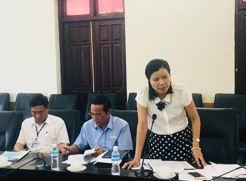 Đồng chí Đỗ Thị Thúy Hạnh - Giám đốc Trung tâm Truyền thông và Văn hóa TP Uông Bí tham gia ý kiến tại hội nghị.