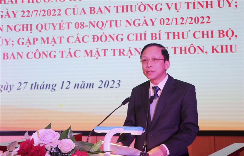Chiều 27/12, Thành ủy Uông Bí tổ chức Hội nghị tổng kết công tác năm 2023; triển khai phương hướng, nhiệm vụ năm 2024; tổng kết Chỉ thị 27-CT/TU ngày 22/02/2022 của BTV Tỉnh ủy; sơ kết 1 năm thực hiện Nghị quyết 08-NQ/TU ngày 02/12/2022 của BTV Thành ủy; gặp mặt các đồng chí Bí thư chi bộ, Trưởng thôn, khu, Trưởng Ban công tác mặt trận các thôn khu. Đồng chí Đặng Xuân Phương, Phó Bí thư Tỉnh ủy dự và phát biểu tại hội nghị.