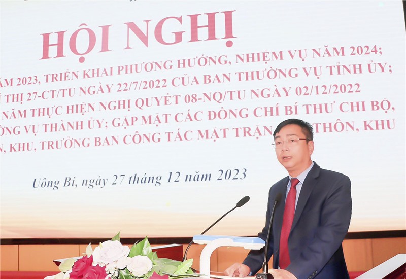 Phát biểu tại hội nghị, đồng chí Đặng Xuân Phương, Phó Bí thư Tỉnh ủy nhấn mạnh, năm 2024, năm có ý nghĩa đặc biệt quan trọng để hoàn thành mục tiêu, chỉ tiêu đã đề ra tại Nghị quyết Đại hội Đảng bộ tỉnh lần thứ XV, nhiệm kỳ 2020 – 2025. Đồng chí yêu cầu Đảng bộ TP Uông Bí bám sát các mục tiêu, chỉ tiêu, nhiệm vụ tại Nghị quyết số 20-NQ/TU, ngày 27/11/2023 của Tỉnh uỷ về phương hướng, nhiệm vụ năm 2024; tập trung thực hiện tốt chủ đề công tác năm 2024 của Tỉnh gắn với chủ đề công tác năm của Đảng bộ TP Uông Bí.