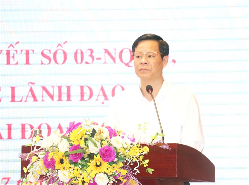 Đồng chí Phạm Tuấn Đạt, Phó Bí thư Thường trực Thành ủy báo cáo 5 năm thực hiện NQ 03 của BTV Tỉnh ủy.