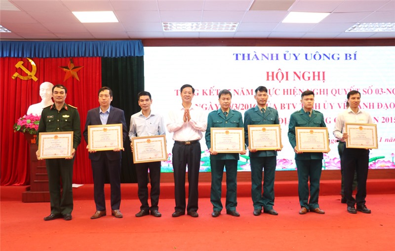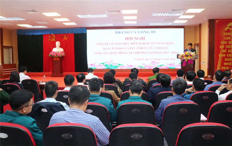 5 năm qua, Thành ủy Uông Bí đã chỉ đạo triển khai, thực hiện có hiệu quả các nhóm nhiệm vụ và giải pháp theo tinh thần NQ 03 ngày 29/3/2016 của BTV Tỉnh ủy; Tổ chức quán triệt, triển khai Nghị quyết đến từng cấp ủy, tổ chức đảng và cán bộ, đảng viên, chiến sỹ LLVT thành phố. Thực hiện đổi mới, nâng cao chất lượng bồi dưỡng kiến thức quốc phòng - an ninh cho đội ngũ cán bộ, đảng viên, chủ cơ sở kinh doanh, chức sắc, chức việc tôn giáo, học sinh - sinh viên. Tiếp tục xây dựng địa phương thành khu vực phòng thủ vững chắc trong tình hình mới. Thành uỷ chỉ đạo UBND, hội đồng nghĩa vụ quân sự thành phố và ban, ngành, tổ chức chính trị - xã hội thành phố tập trung triển khai thực hiện tốt các khâu, các bước trong tuyển chọn và gọi công dân nhập ngũ, bảo đảm hoàn thành 100% chỉ tiêu giao quân hàng năm. Xây dựng lực lượng DQTV đa dạng, rộng khắp, thường xuyên kiện toàn biên chế của các đơn vị phù hợp với thực tế; Tổ chức huấn luyện đơn vị DQTV cơ sở và lực lượng dự bị động viên đảm bảo quân số, thời gian, nội dung, chương trình và an toàn tuyệt đối về người, tài sản; Chỉ đạo diễn tập khu vực phòng thủ, diễn tập PCTT - TKCN cấp thành phố và diễn tập chiến đấu phòng thủ các cụm AN-QP đảm bảo chất lượng.