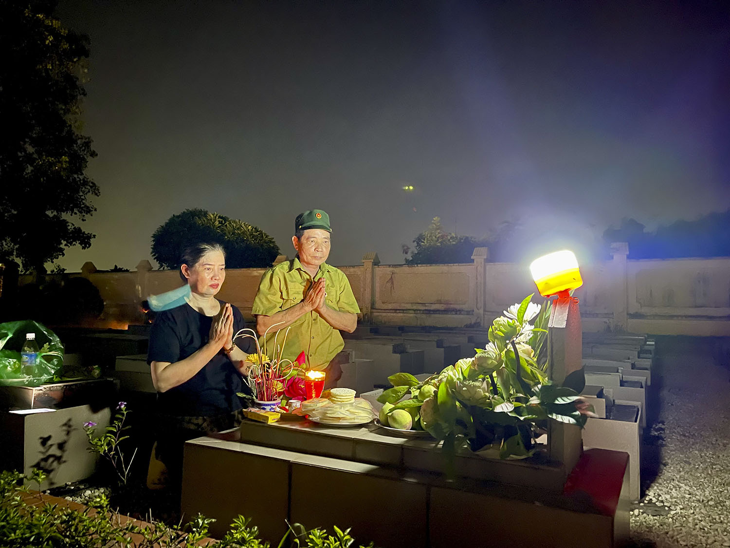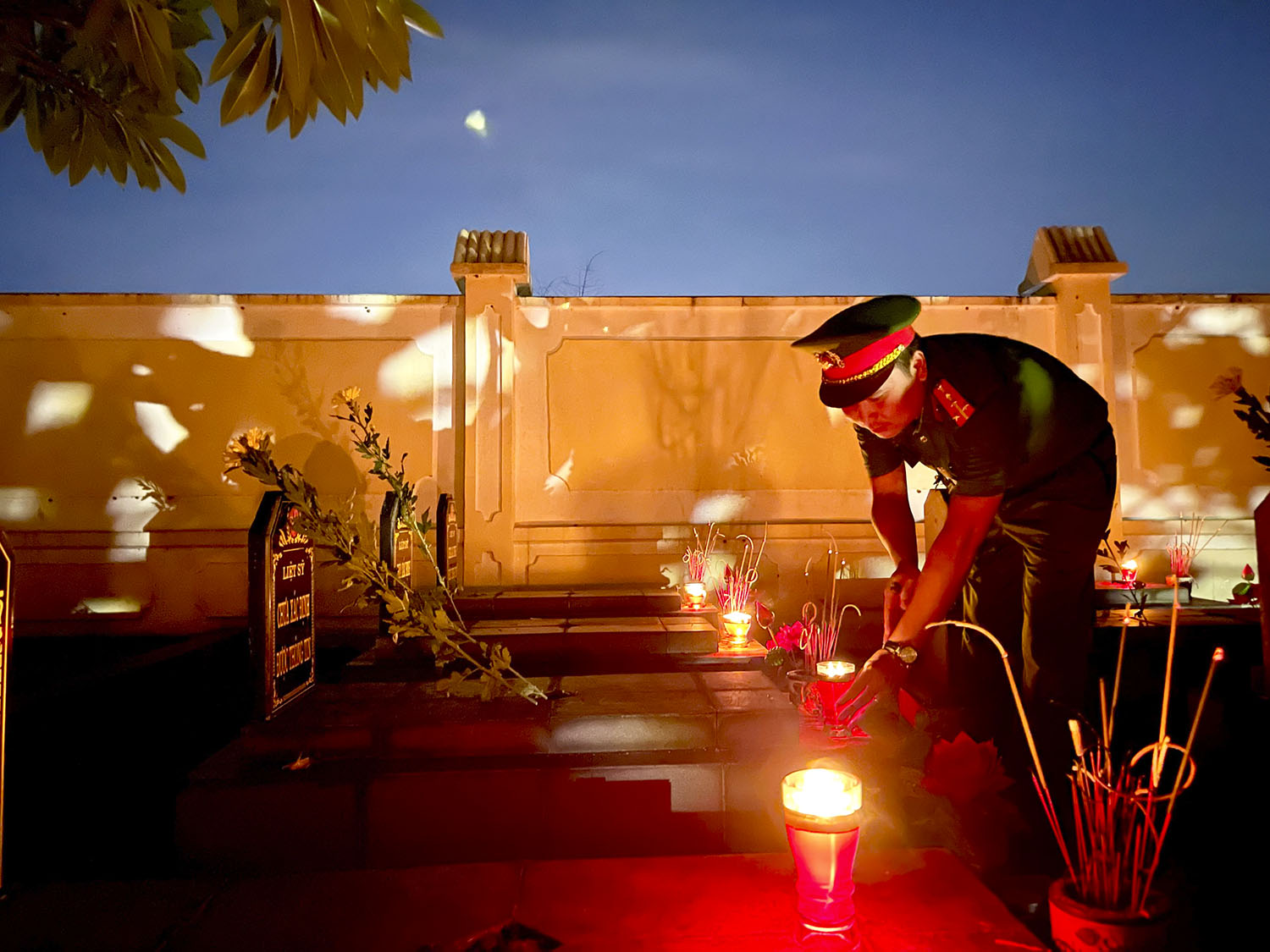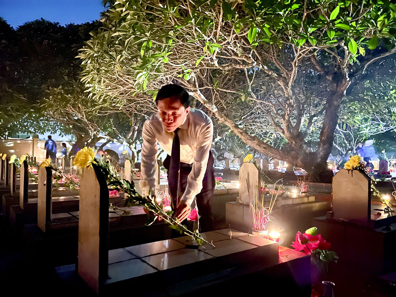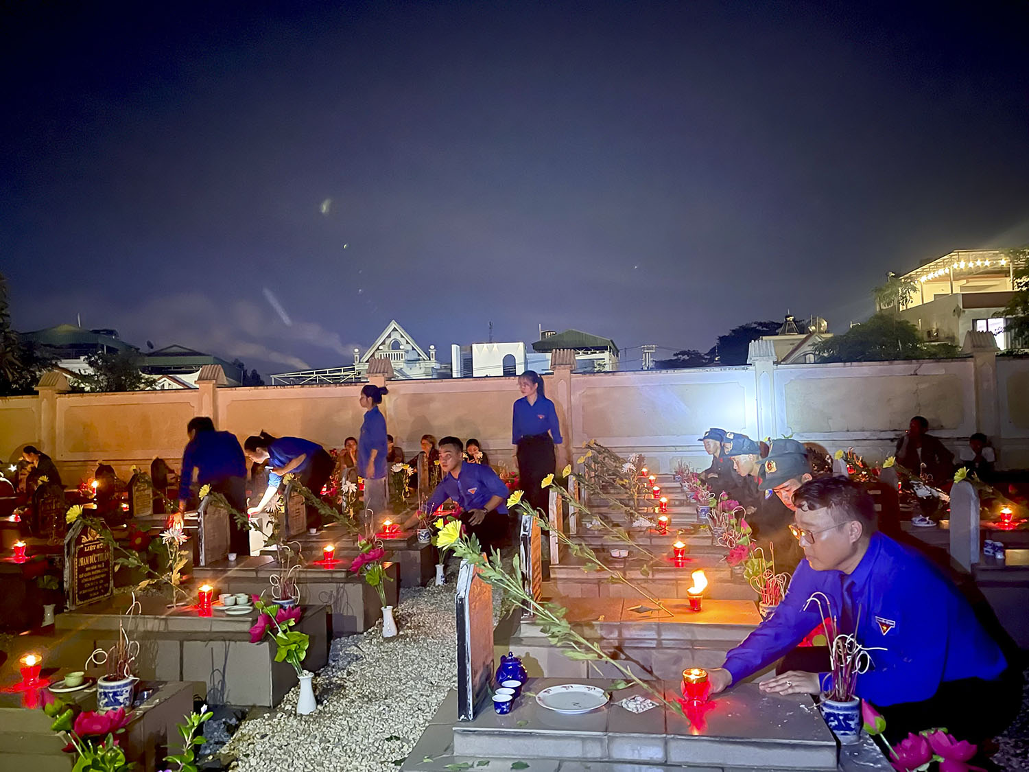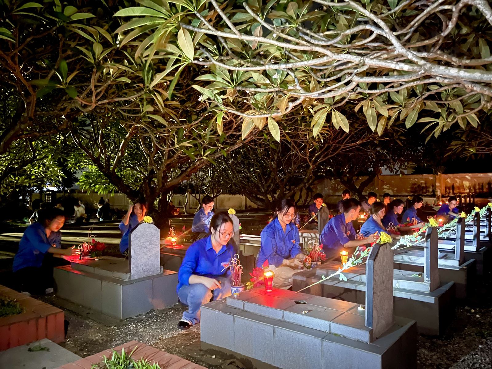 Đoàn viên, thanh niên thắp nến tri ân tại các phần mộ Anh hùng liệt sỹ.