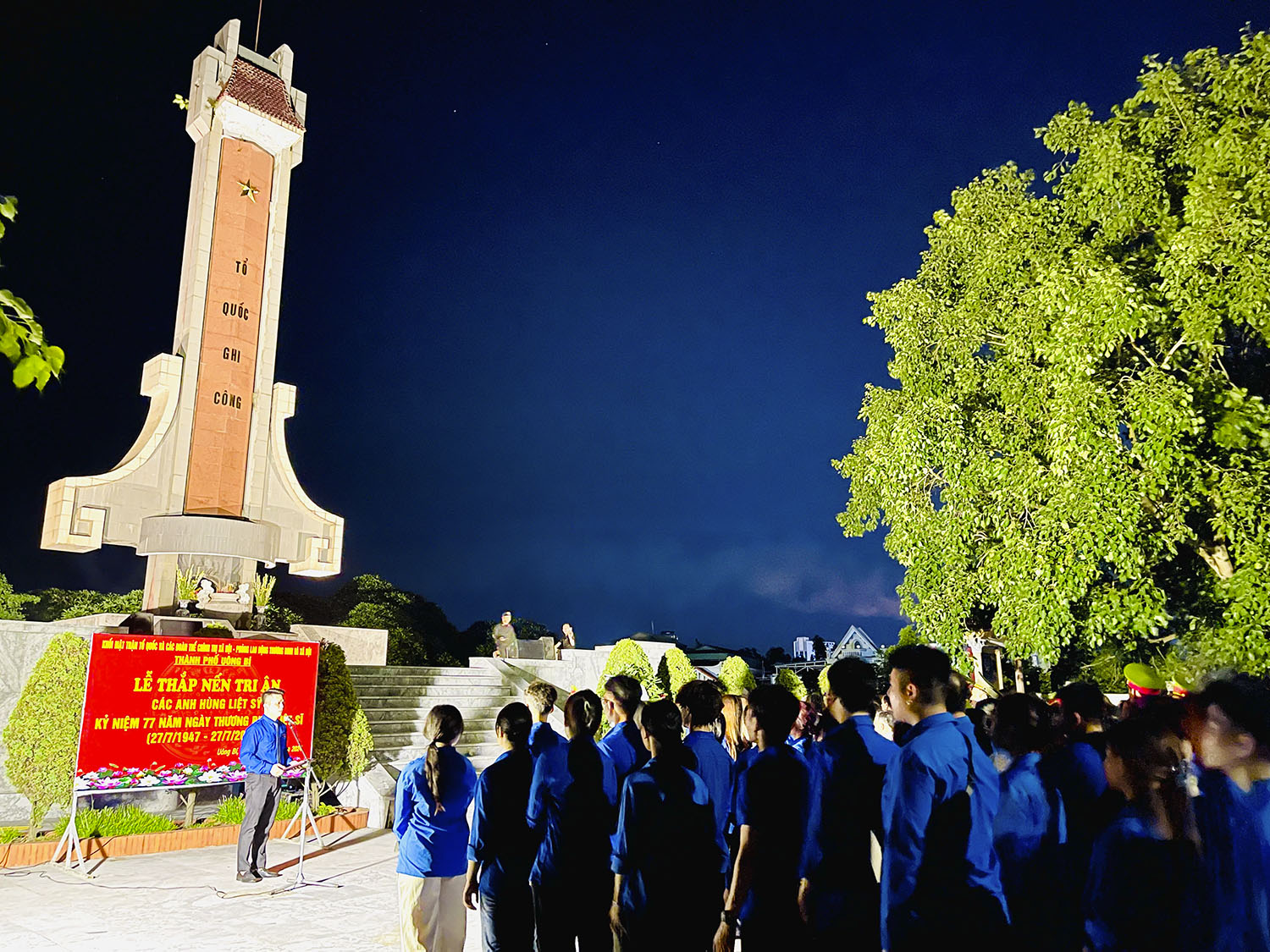 Nhân Kỷ niệm 77 năm ngày Thương binh - liệt sỹ, tối 26/7, Khối MTTQ và các tổ chức chính trị - xã hội thành phố đã tổ chức Lễ thắp nến tri ân các anh hùng liệt sỹ tại Nghĩa trang liệt sỹ thành phố. Dự chương trình có các đồng chí: Nguyễn Chiến Thắng, Phó Bí thư Thường trực Thành ủy, Chủ tịch HĐND thành phố; Nguyễn Văn Thành, Uỷ viên BTV Thành ủy, Phó Chủ tịch Thường trực UBND thành phố; Đào Ngọc Sơn, Uỷ viên BTV, Trưởng Ban Dân vận Thành uỷ, Chủ tịch UB MTTQ thành phố.