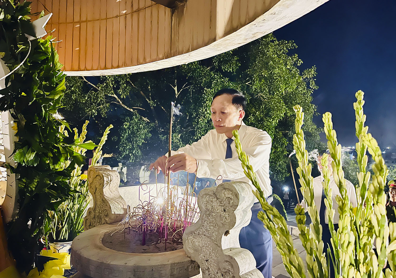 Trong không khí trang nghiêm, sau phút mặc niệm, đoàn đại biểu các ban, ngành, đoàn thể, lực lượng vũ trang, đoàn viên thanh niên và thân nhân gia đình liệt sĩ đã thành kính dâng hương, thắp nến tri ân tưởng niệm các anh hùng liệt sĩ, bày tỏ lòng biết ơn vô hạn đối với các liệt sĩ đã hy sinh cho sự nghiệp đấu tranh giải phóng dân tộc.