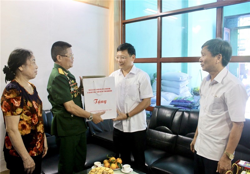 Đồng chí Nghiêm Xuân Cường, Tỉnh uỷ viên, Bí thư Thành uỷ, Chủ tịch HĐND thành phố thăm, tặng quà người có công tiêu biểu.