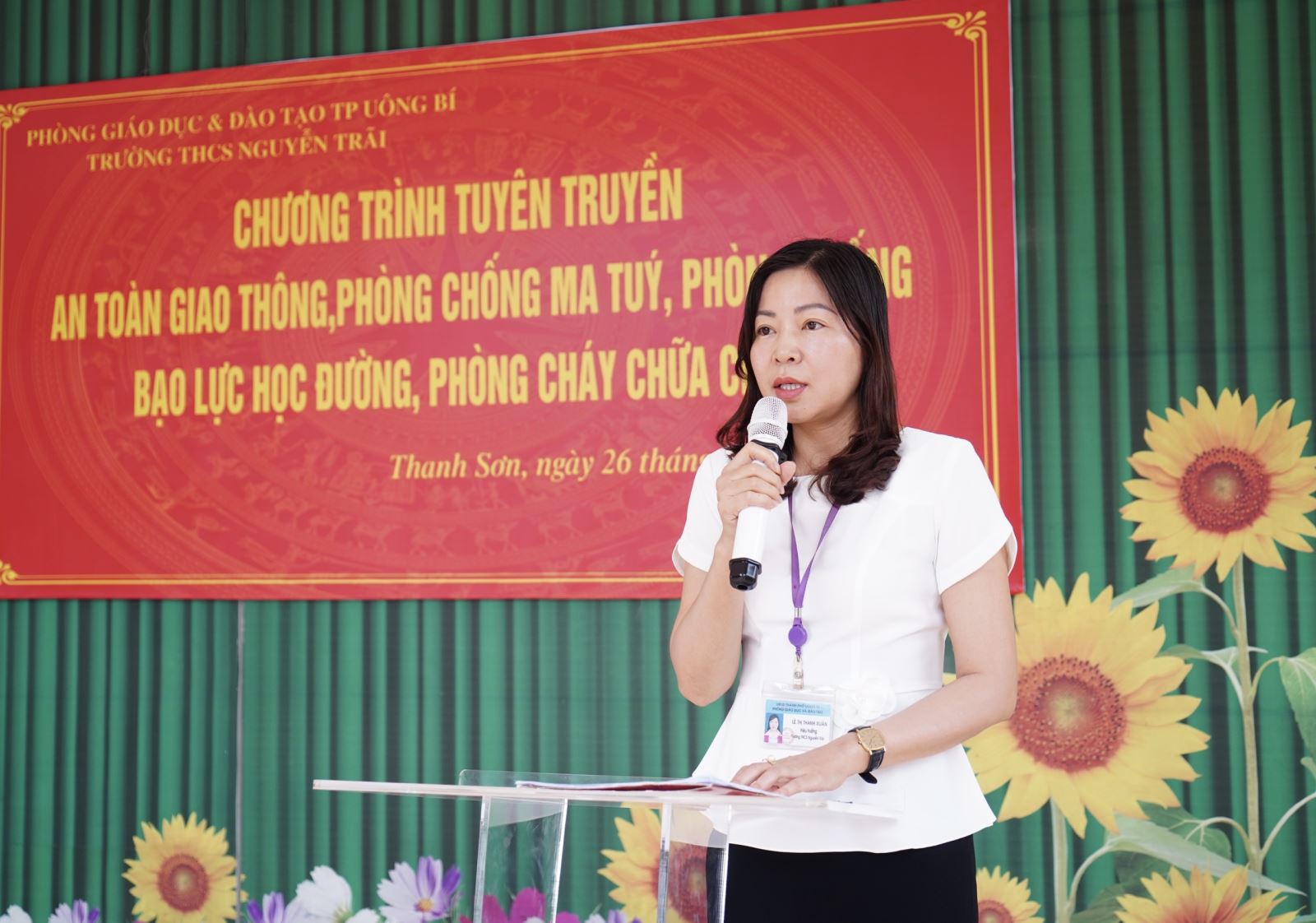 Cô Lê Thị Thanh Xuân, Hiệu trưởng Trường THCS Nguyễn Trãi phát biểu tại chương trình.