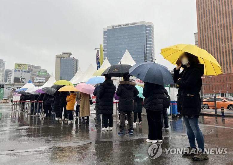 Người dân xếp hàng chờ xét nghiệm COVID-19 tại thủ đô Seoul, Hàn Quốc, ngày 19/3. (Ảnh: Yonhap)