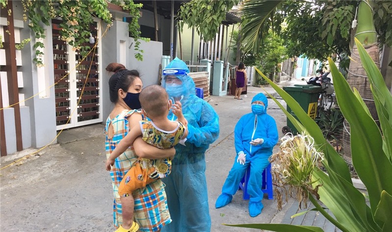 Lực lượng y tế khẩn trương lấy mẫu xét nghiệm tại phường An Khê, quận Thanh Khê - Ảnh: VGP/Thế Phong.