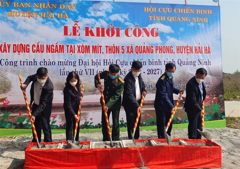 UBND huyện Hải Hà phối hợp với Hội CCB tỉnh khởi công xây dựng công trình cầu tràn vượt lũ xóm Trại Mít, thôn 5, xã Quảng Phong.