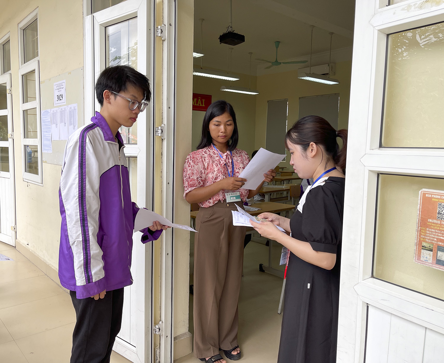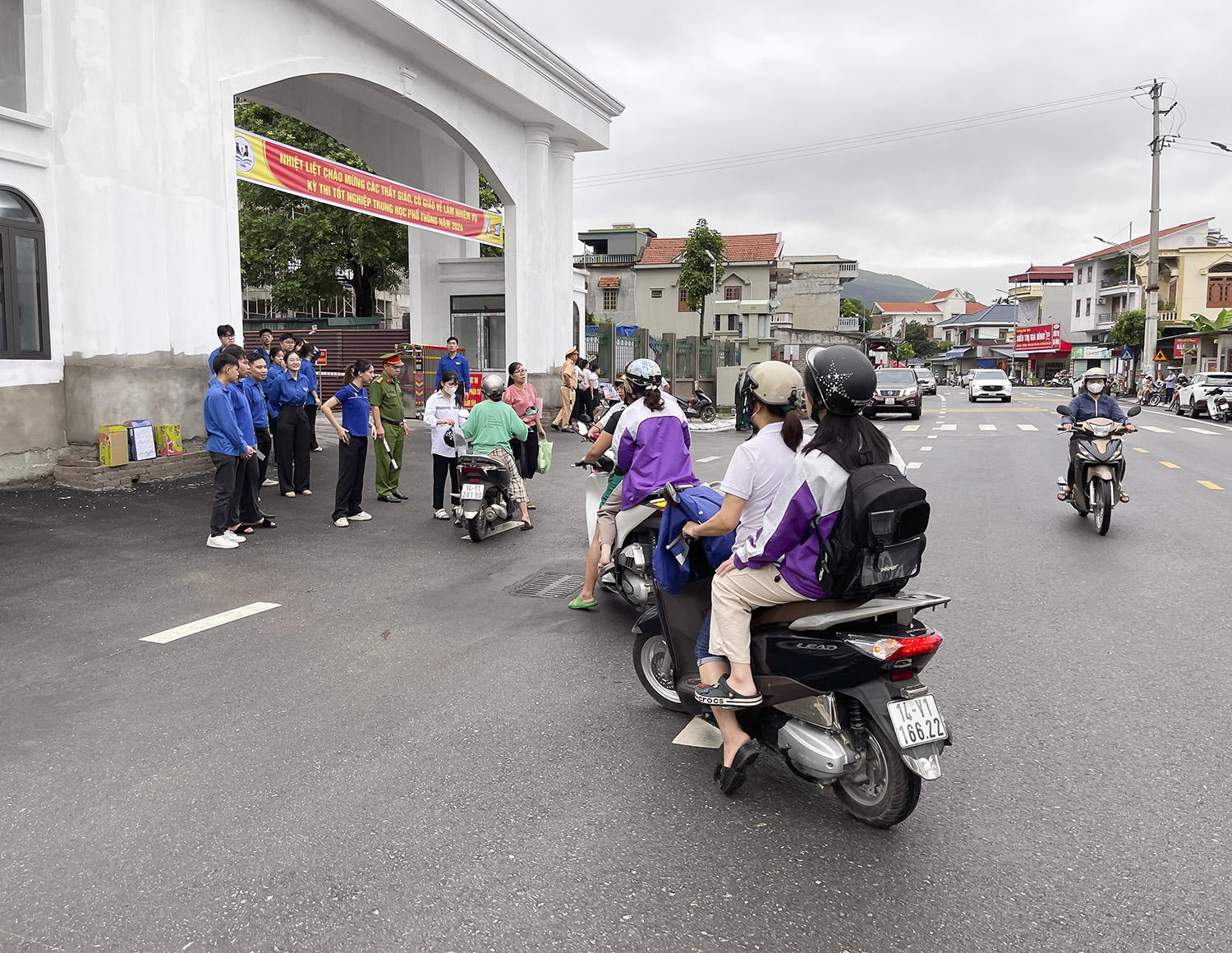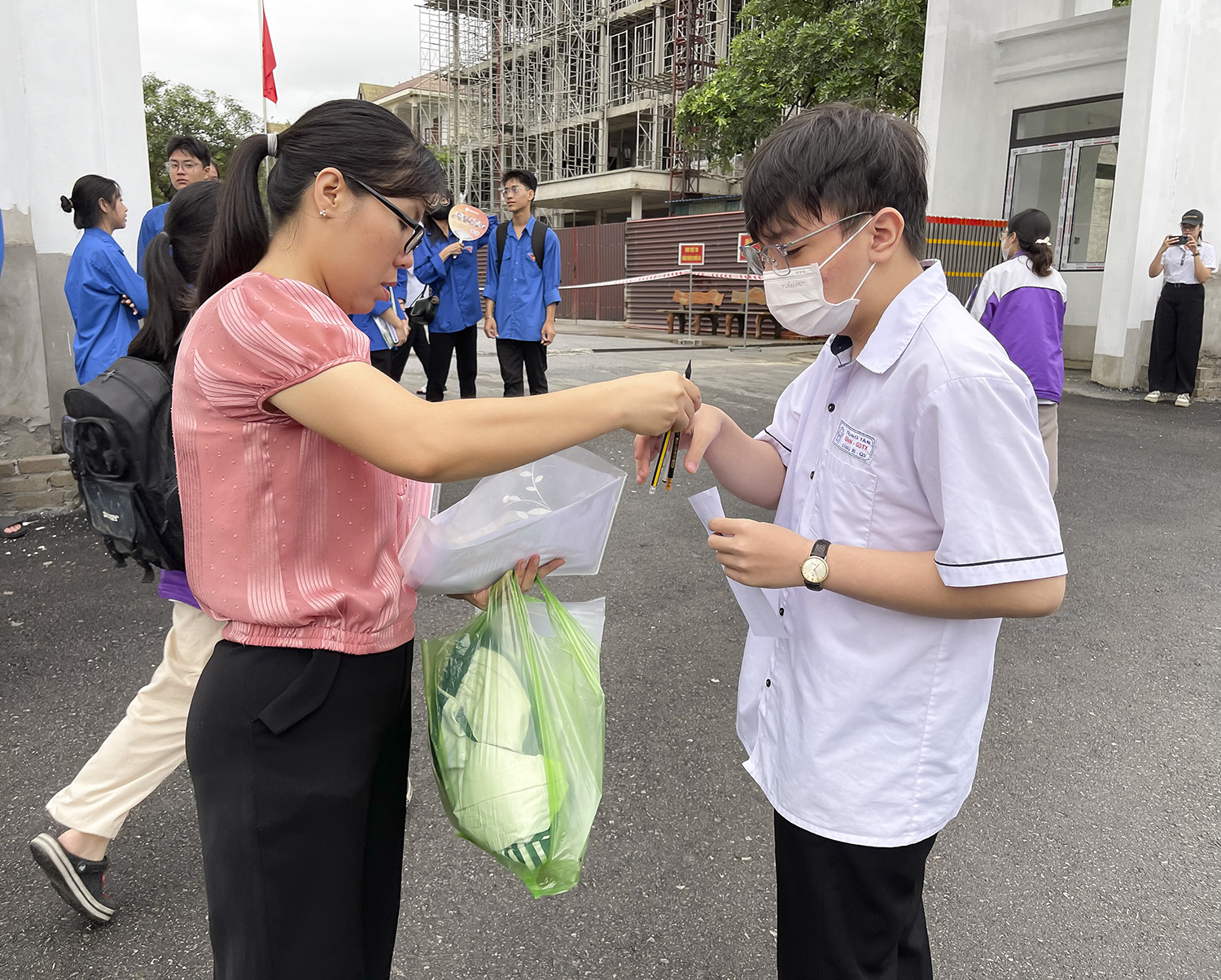 Theo ghi nhận, ngay từ sớm, các thí sinh đã có mặt tại các điểm thi để chuẩn bị cho môn thi đầu tiên. Tại các điểm thi, lực lượng chức năng, thanh niên tình nguyện đã có mặt, sẵn sàng phân luồng đảm bảo an toàn giao thông và hướng dẫn thí sinh vào điểm thi.