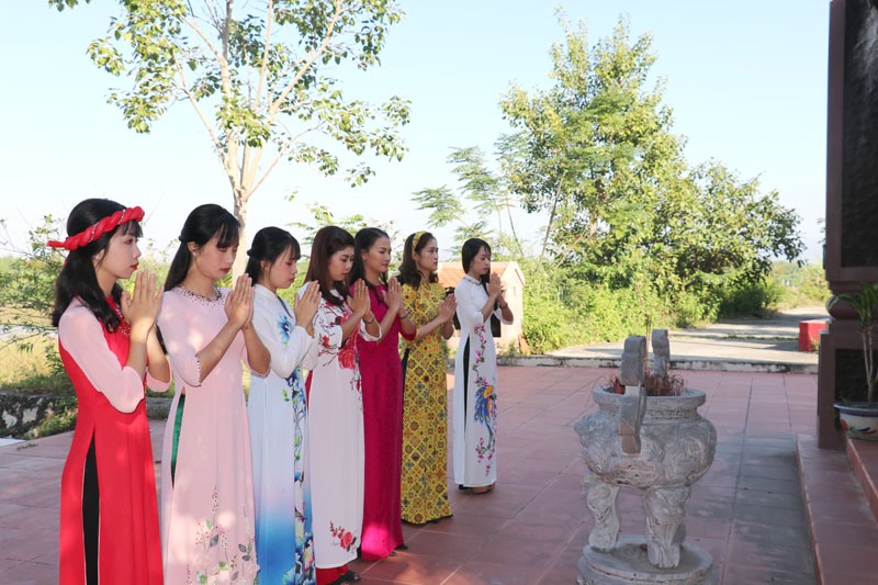 Các thí sinh thắp hương tại miếu Cổ Linh.