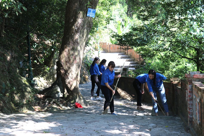 Cùng tham gia hoạt động dọn vệ sinh môi trường tại chùa Hoa Yên (Yên Tử).
