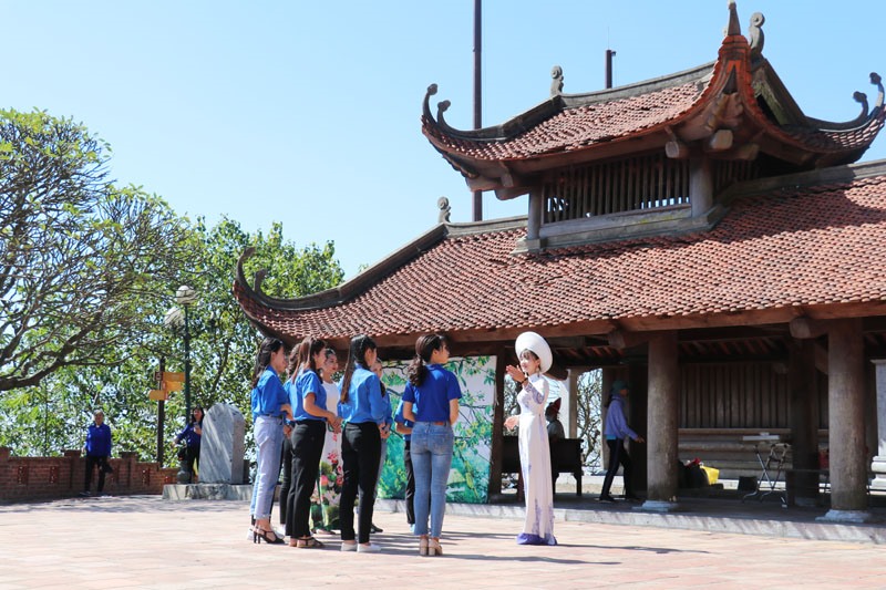 Các thí sinh nghe giới thiệu về khu di tích Lịch sử danh thắng Yên Tử.