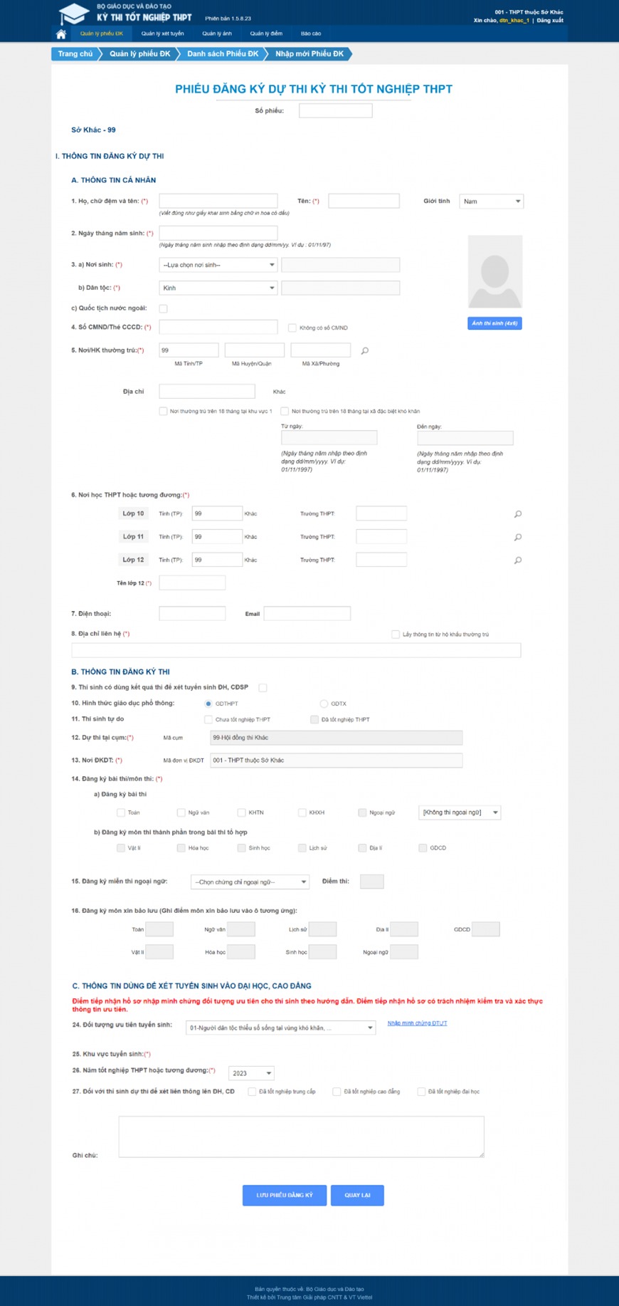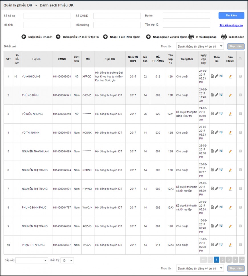 Sau khi nhập và sửa phiếu đăng ký, điểm TNHS sẽ thực hiện duyệt thông tin đăng ký dự thi cho thí sinh.