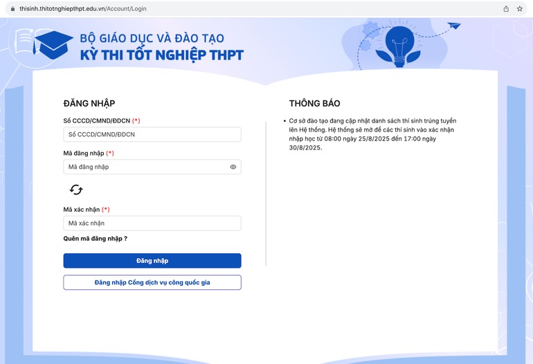Thí sinh xác nhận nhập học trên hệ thống của Bộ Giáo dục và Đào tạo từ 25/8