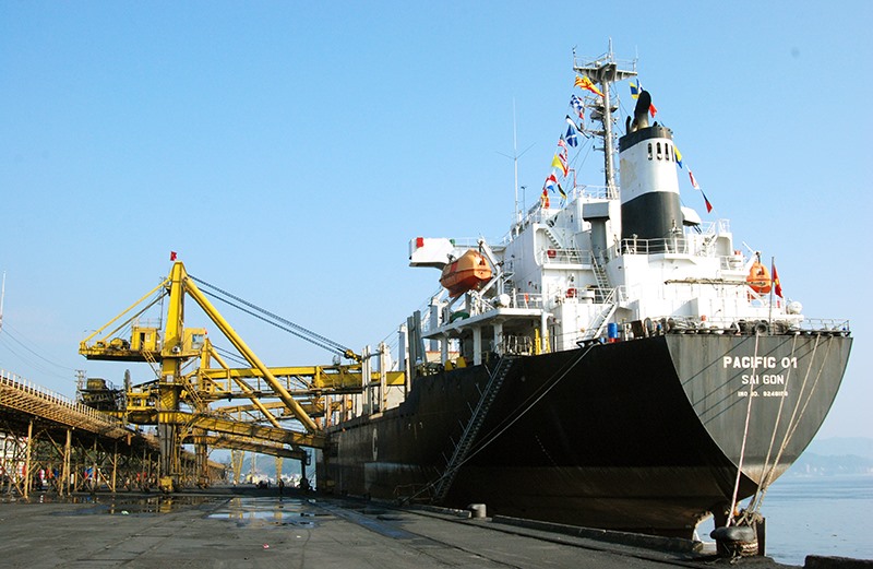 Chuyến tàu đầu tiên vào “ăn than” trong ngày mùng 1 Tết Đinh Dậu (28-1-2017) tại Cảng Cửa Ông (TP Cẩm Phả).