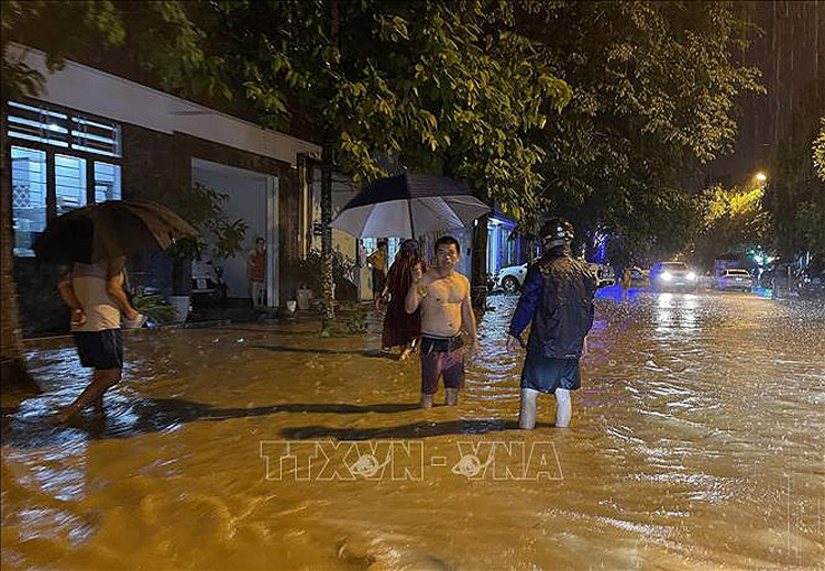 Ngập cục bộ tại một số tuyến đường chính trong thành phố Lào Cai. Ảnh: Quốc Khánh - TTXVN.
