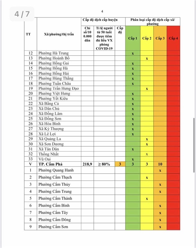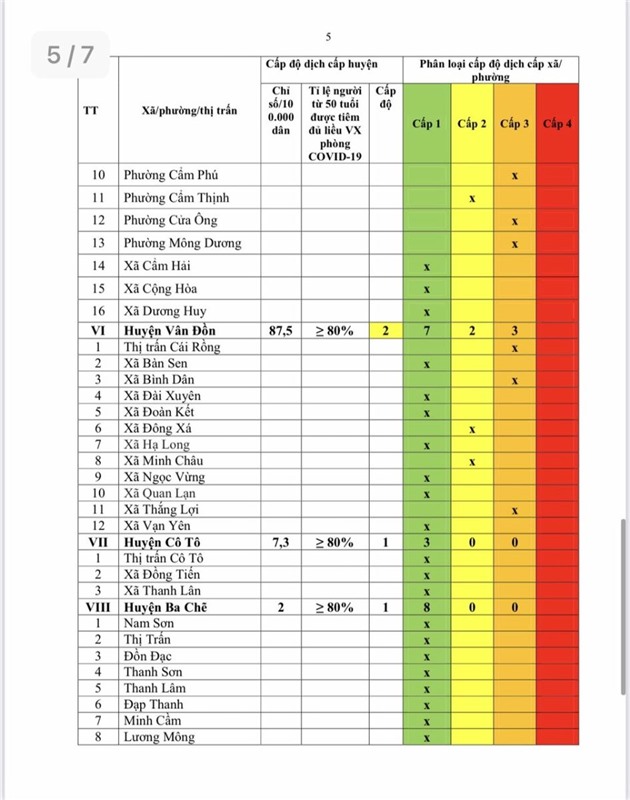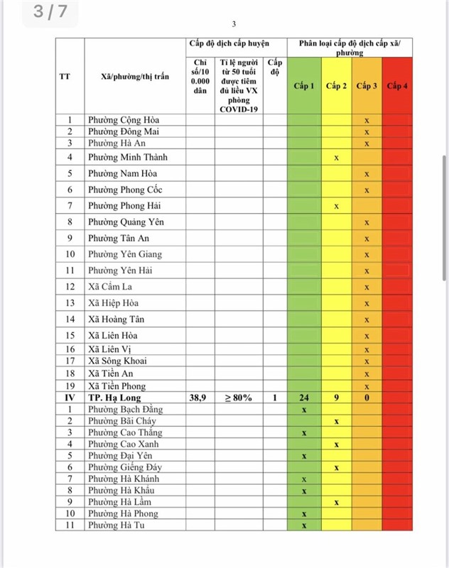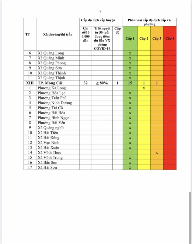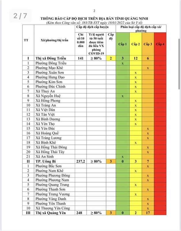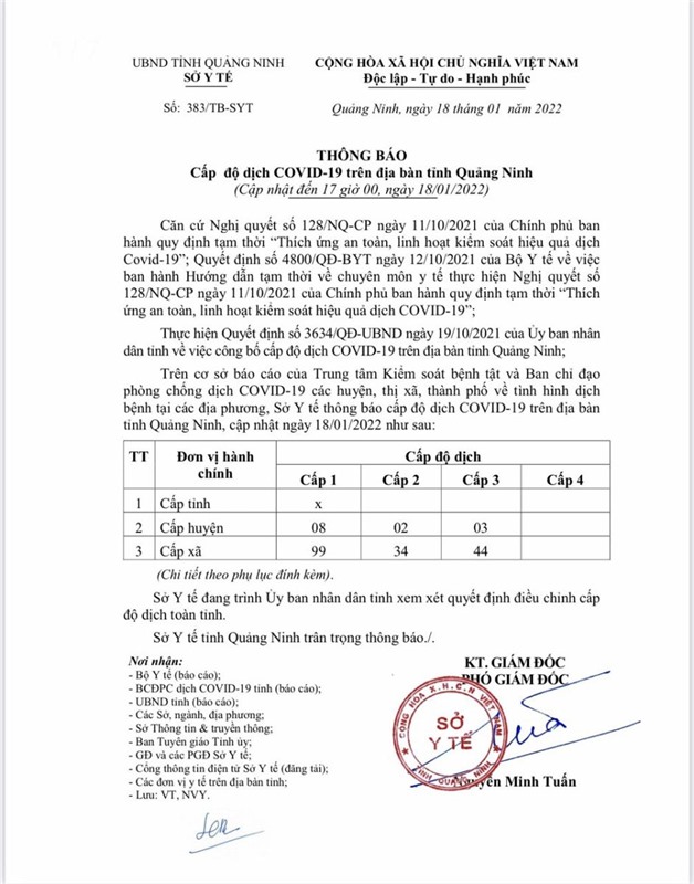 Thông báo Cấp độ dịch COVID-19 trên địa bàn tỉnh Quảng Ninh (tính đến 17h00' ngày 18/01/2022)