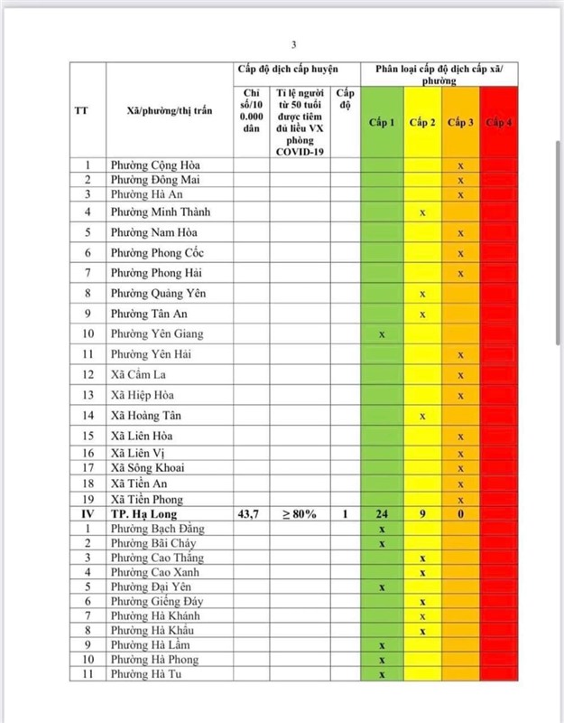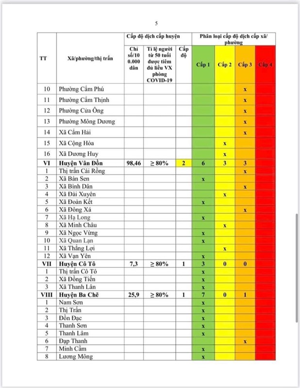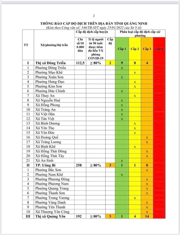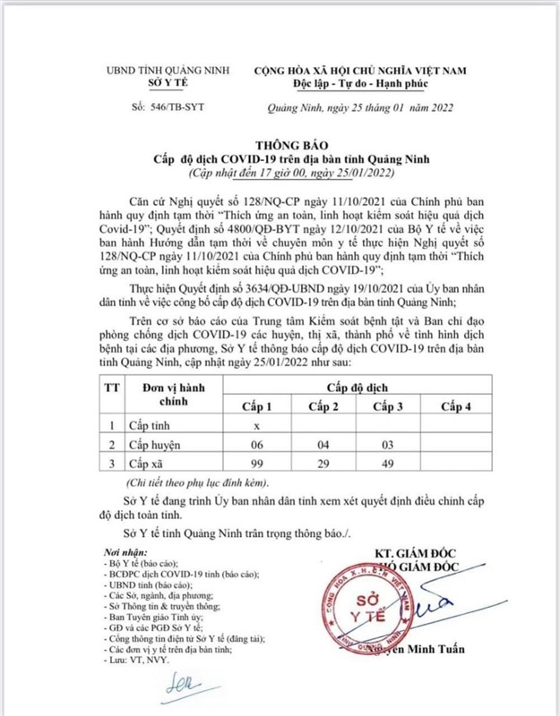 Thông báo Cấp độ dịch COVID-19 trên địa bàn tỉnh Quảng Ninh (tính đến 17h00' ngày 25/01/2022)