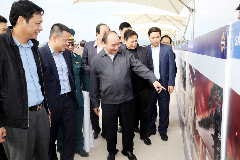Thủ tướng Chính phủ Nguyễn Xuân Phúc thị sát Khu dịch vụ, du lịch phức hợp cao cấp có casino tại Vân Đồn. Ảnh: HÙNG SƠN