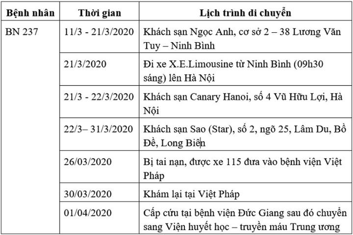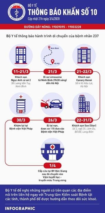 Bộ Y tế đề nghị tất cả những ai đi tới những địa điểm này trong thời gian nói trên liên hệ ngay với Trung tâm Kiểm soát Bệnh tật các tỉnh, thành phố để được hướng dẫn theo dõi sức khoẻ.