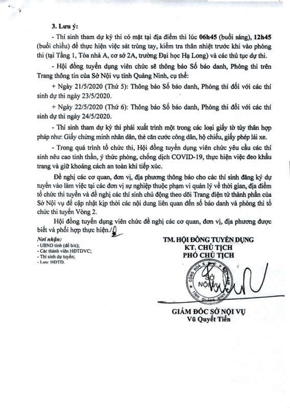 Công văn số 68/HĐTD của Hội đồng tuyển dụng viên chức tỉnh năm 2019: V/v thông báo một số nội dung liên quan đến việc tổ chức thi tuyển Vòng 2, kỳ tuyển dụng viên chức năm 2019