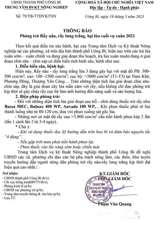 Thông báo phòng trừ rầy nâu, rầy lưng trắng hại lúa cuối vụ xuân 2023