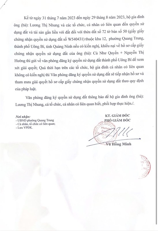 Thông báo về việc làm thủ tục cấp giấy chứng nhận quyền sử dụng đất, quyền sở hữu nhà ở và tài sản khác gắn liền với đất