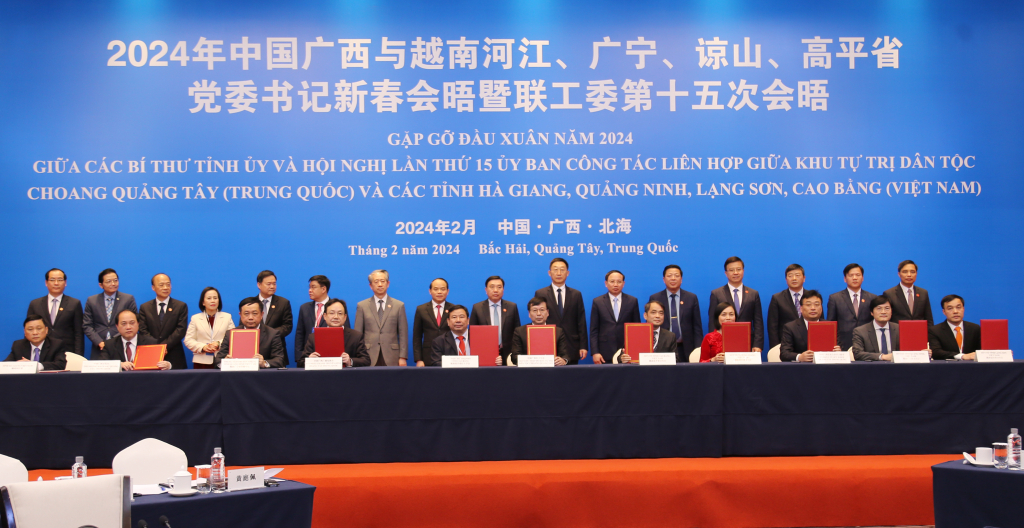 Lãnh đạo các tỉnh: Quảng Ninh, Hà Giang, Lạng Sơn, Cao Bằng (Việt Nam) và Khu tự trị Dân tộc Choang Quảng Tây (Trung Quốc) tham gia chương trình Gặp gỡ đầu xuân năm 2024.